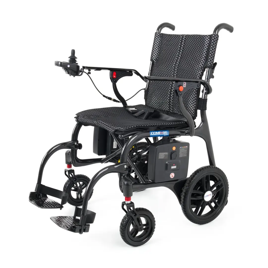Comfort Plus DY01107 Karbon Lityum Pilli Akülü Tekerlekli Sandalye – Ultra hafif karbon fiber gövdesi ile güç, dayanıklılık ve konforu bir arada sunar. Katlanabilir tasarımı, uzun ömürlü lityum pil teknolojisi ve joystick kontrollü sürüş sistemiyle şehir içi ve seyahat kullanımına mükemmel uyum sağlar. Hafif, sağlam ve taşınabilir yapısıyla günlük hayatınızı kolaylaştırır.
