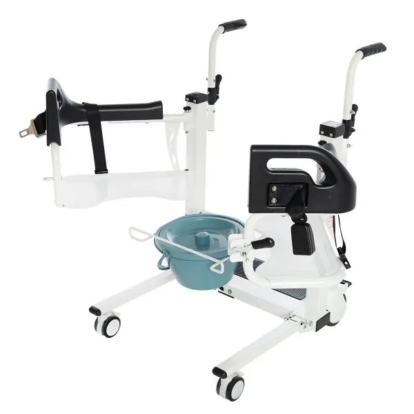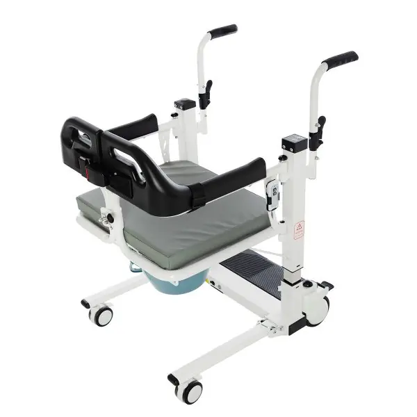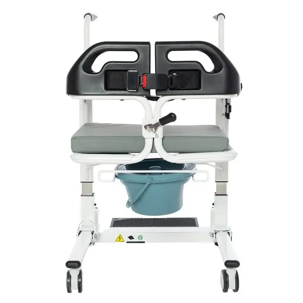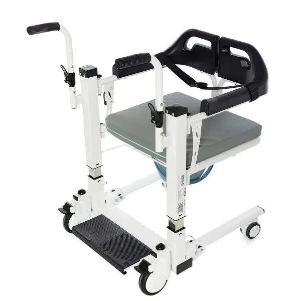 Alman kalitesi ile Avrupa standartlarında üretilen Römer R452 Motorlu – Uzaktan Kumandalı Transfer Sandalyesi; hastayı transfer etmede kolaylık sağlamak için üretilmiş şahane bir üründür. Uzaktan kumandası sayesinde refakatçiye kullanım kolaylığı sağlayan R452 model ürün aynı zamanda cihaz üzerindeki tuşlar sayesinde kullanıcının bulunduğu konumdaki yüksekliğe oranla da ayarlama yapmaktadır. Ardından hastanın kalça altından kavrayarak hastayı oturtup güvenlik için emniyet kemer kilidini takarak farklı bir konuma götürülmesinde kolaylık sağlamaktadır. Hastanın düşme tehlikesi göz önünde bulundurularak emniyet kemeri ile destek verilmiştir. Terletme yapmayan, alev almayan, kir tutmayan hava delikli yumuşak oturma minderi sayesinde konforlu bir yapıya sahiptir.  Kolay ve pratik kullanıma sahip olan Römer R452 tuvalet özelliklidir. Tuvalet özelliğini kullanılmama durumunda çıkarılabilirdir. 4 tekerleği de fren özellikli olan transfer sandalyesi aynı zamanda katlanabilir özelliktedir. Römer R452 model 3 yıl garantili üründür.